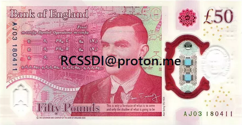 - £50 Polymer – Alan Turing reverse; advanced foil, motion imagery.