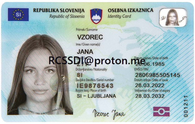Buy exceptionally authentic valid EU-Slovenian identity card for sale online exceptional prices with fast, stealthy delivery within the EU. Including security threads like holograms with state seals, flags visible under white light, images and text incorporated as watermarks only visible under UV light, fine microprints text-based patterns, optically variable ghost portrait changing appearance at different angles, metallic-tinted dynamic look-through element, sophisticated embedded guilloche security design techniques with tactile features like raised edges and glue lines.