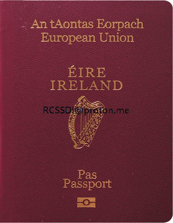 Buy authentic and genuine Irish passport online with security threads like embedded three-dimensional holograms visible under UV light, faint, translucent watermarks, special optically variable ink (OVI) that changes color at different angles, microprinting, and embedded fluorescent fibers visible under UV light with edge designs in visa pages.